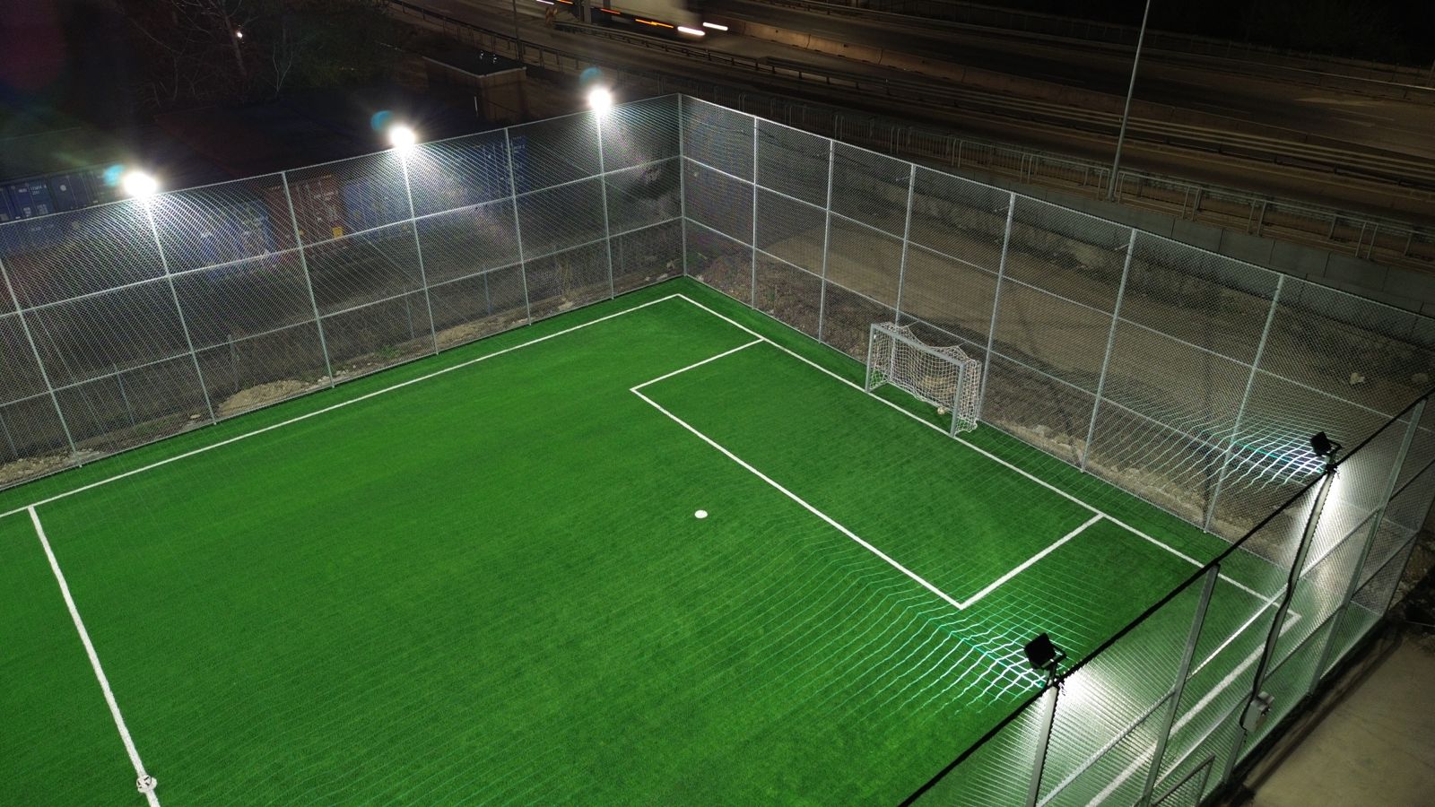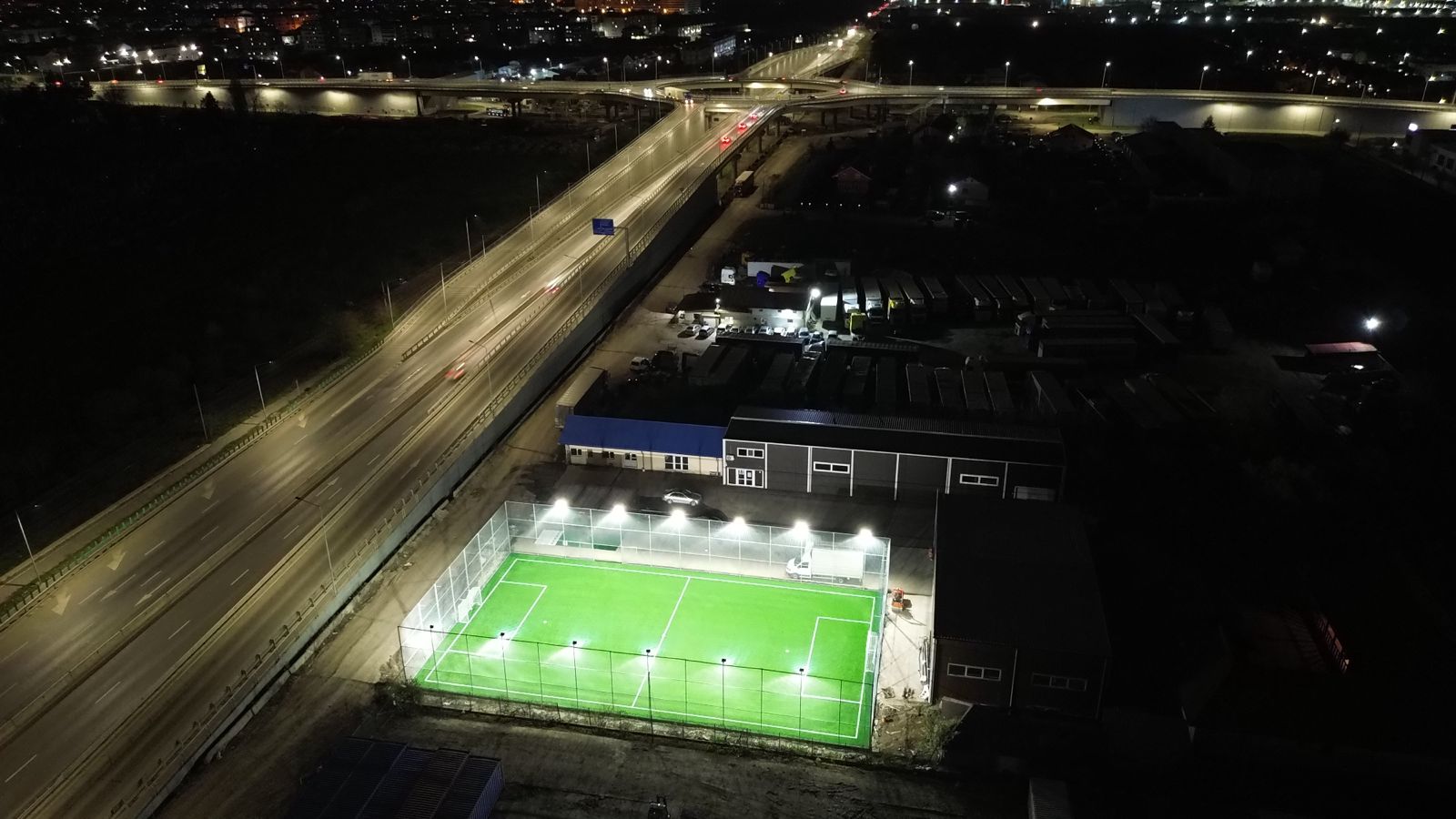 Conceput special pentru meciuri de fotbal de 6 la 6, terenul nostru de fotbal in aer liber, cu dimensiune de 40x20 m, iti ofera o experienta premium de joc prin gazonul artificial de 50 mm omologat FIFA, ingradit si acoperit de jur -imprejur cu plasa si nocturna.